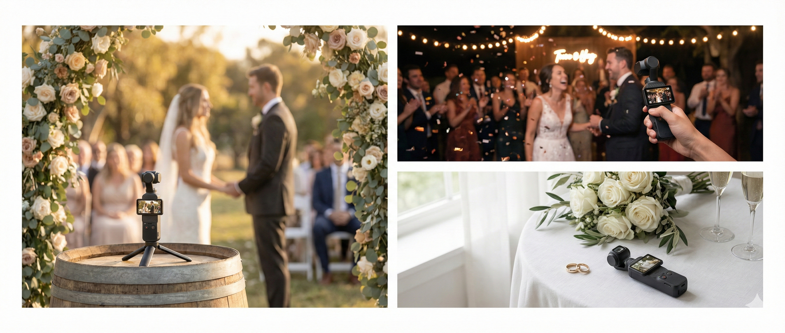 The kit comes with high-end gear like the DJI Pocket 3 cameras and DJI Mic 2 wireless audio recorders, ensuring that both the video and sound quality are exceptional. The cameras are compact, easy to use, and capable of capturing smooth, high-resolution footage in 4K. The DJI Mic 2 ensures clear audio, so you won’t miss a word of meaningful speeches or heartfelt vows. The equipment is user-friendly, making it easy for anyone to operate and capture high-quality footage. How easy? Power on and hit record.