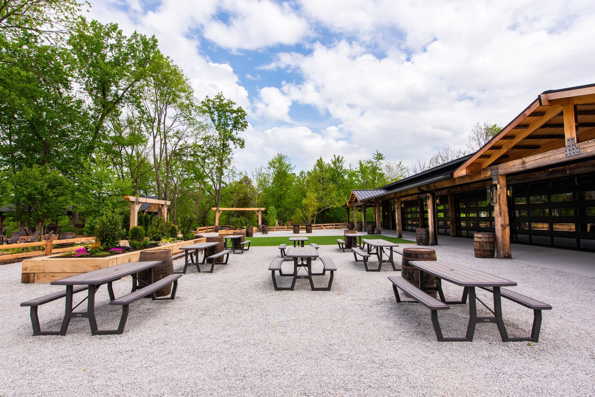 Progress Park offers a one-of-a-kind wedding experience at our 12-acre glamping resort and event venue. Nestled in nature, the property features towering trees and a beautifully groomed walking trail that leads to a stunning 2-acre pond. It’s the perfect balance of tranquility and accessibility, providing the feeling of an escape to nature, all while being just a short distance from Louisville Metro. The serene setting offers couples the opportunity to celebrate their love surrounded by natural beauty, making it a memorable venue for any wedding.